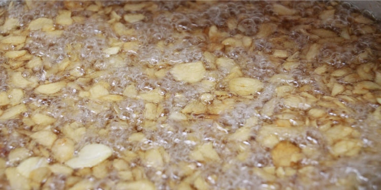 來自青森的優質大蒜運送至小豆島的工坊,在嚴格的溫度控制下,工作人員手工精心烹製,讓其香氣充分釋放,呈現最佳風味。 -